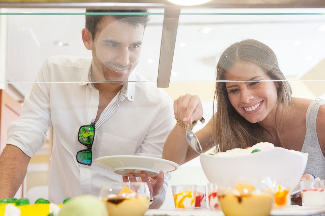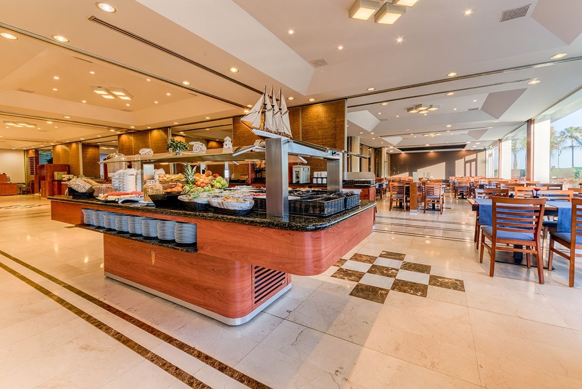 Para el almuerzo o la cena el servicio de comedor será buffet o menú según la temporada en nuestro Restaurante Océano que se caracteriza por ofrecer gastronomía típica de la Costa de la Luz y de tradición culinaria andaluza. En Hotel Puerto Bahía & Spa encontrará una cocina de calidad y a la altura de sus expectativas. En este Restaurante con vistas a la Bahía de Cádiz podrá degustar una amplia variedad de arroces, verduras, ensaladas, carnes y pescados frescos. Disponemos de una zona de buffet especial para niños en temporada de verano.